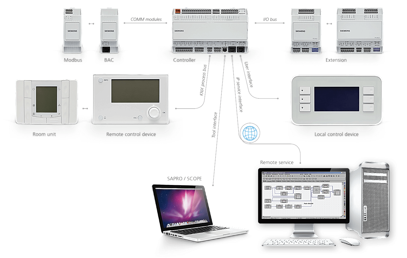 - Большой выбор устройств управления, комнатных модулей программирования и сенсорных панелей