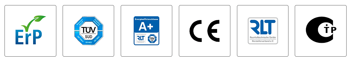Для предотвращения распространения шума (как структурного, так и акустического) используются только изолирующие соединители (оцинкованные или из нержавеющей стали). Они могут быть полностью изолированы и изолированы термически, чтобы предотвратить образование слабых мест. Оптимизированная по акустике конструкция корпуса с коэффициентом звукопоглощения Rw 38 дБ по DIN 52210 сводит к минимуму уровень шума от вентиляторов.