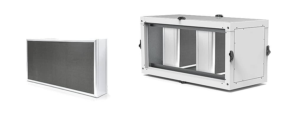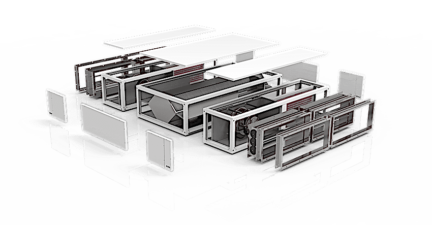 - Возможность индивидуального расширения за счет компонентов, оптимизированных по требованию, таких как глушители, нагревательные змеевики (PWW / электрические), охлаждающие змеевики (PCW / прямые расширительные Пин Ап фильтры и многое другое